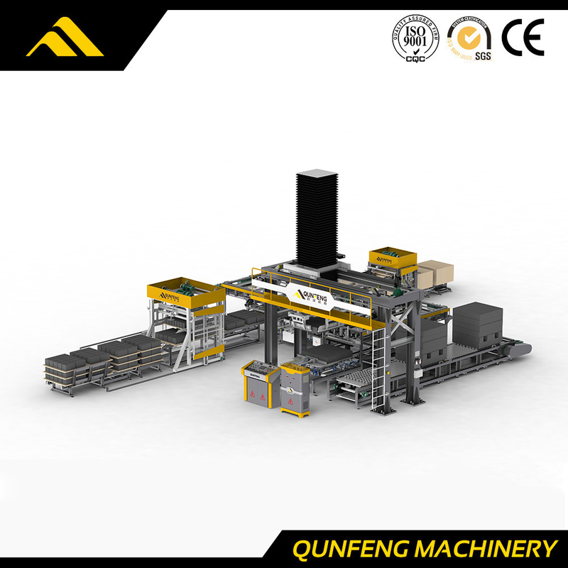 1. Transportador de descarga de blocos 2. Máquina de descarga de blocos 3. Transportador de passo 4. Máquina de rotação de placas 5. Sistema de triagem 6. Empilhamento e divisão de plataforma de tijolos 7. Máquina de recepção de placas 8. Transportador de recepção de placas 9. Cuber 10. Transportador de corrente de tanque 11. Sistema hidráulico 12. Sistema de controle Principais características técnicas 1.O sistema Cuber independente é especialmente pesquisado e desenvolvido para resolver o problema de que blocos curados em linhas de produção simples requerem cuber manual, que é de grande intensidade de trabalho, mas baixa eficiência de produção. Normalmente, este sistema é colocado separadamente próximo ao campo de cura para cubar os blocos curados, mas também pode ser conectado diretamente à linha de produção de blocos para realizar o cuber online (nesta situação sugere-se adotar o modo automático): É composto por máquina automática de descarga de blocos, transportador de corrente, empurrador de tijolos, coletor de paletes, plataforma giratória automática, cuber e transportador sem bandeja. 2.Este sistema cuber pode separar e reagrupar diferentes tipos de blocos e, finalmente, formar as pilhas quadradas necessárias para empilhamento cruzado e gerar automaticamente posições de furos de tijolos de garfo de acordo com as necessidades. Após o empilhamento, os blocos podem ser produzidos por transportador de corrente de tanque e podem ser embalados manualmente ou embalados por enfardadeira automática. Todo o sistema adota controle de tela de toque PLC +. A troca rápida e em tempo real de dados é realizada por meio de Ethernet, e a operação automática não tripulada é realizada com sensores inteligentes de última geração. Em caso de falha, a máquina irá parar automaticamente, emitir um alarme e exibir a localização da falha, e a falha pode ser facilmente removida sem técnicos profissionais. |