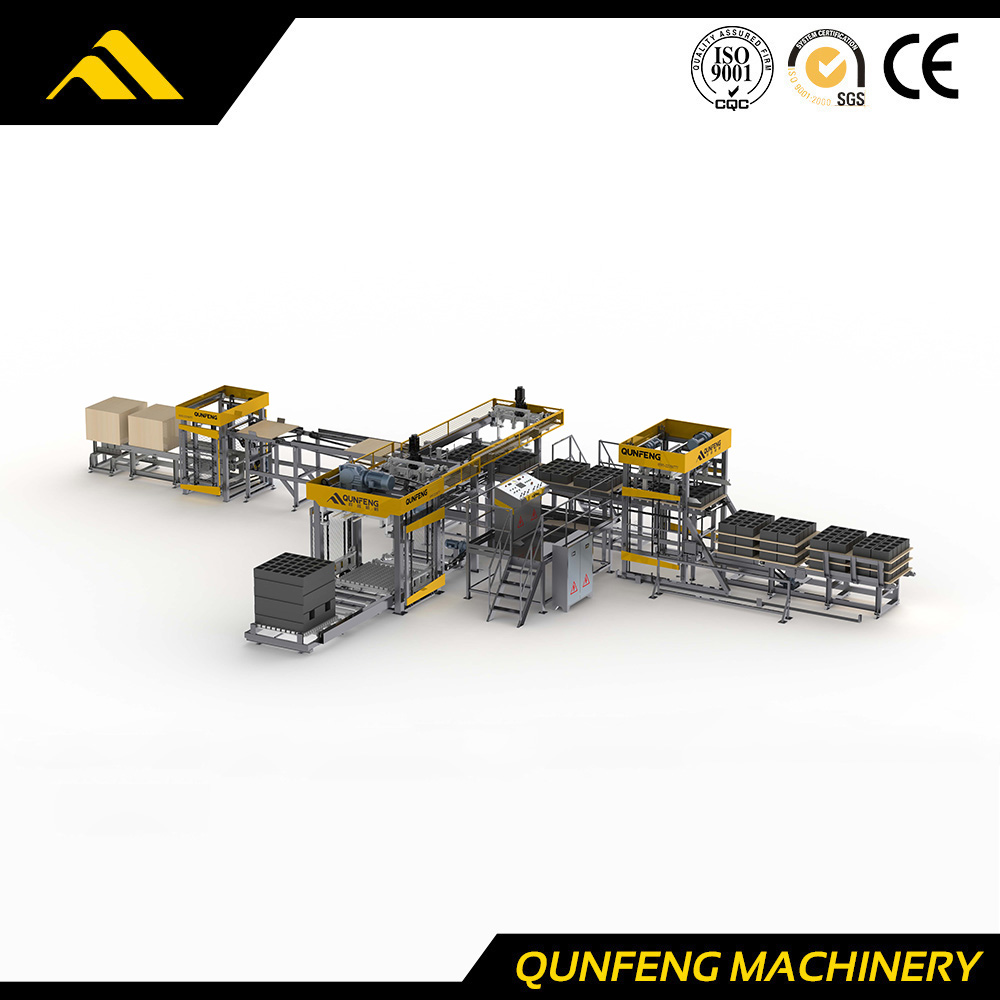 O Sistema de Paletização em Posição Baixa (Cuber) é uma solução de automação avançada projetada para otimizar o processo de empilhamento de produtos em paletes com o mínimo de intervenção manual. Este sistema fornece paletização eficiente e consistente, utilizando robótica de ponta e controles precisos, permitindo lidar com vários tamanhos e formatos de produtos. Seu design fácil de usar permite fácil integração em linhas de produção existentes, simplificando o fluxo de trabalho e reduzindo os custos de mão de obra. A configuração de posição baixa também garante acesso mais fácil e reduz o esforço dos operadores. Ideal para indústrias que visam aumentar a eficiência e a precisão da paletização, este sistema aumenta a produtividade geral. Normalmente colocado de forma independente próximo ao pátio de cura para empilhamento de blocos curados, ele também pode ser conectado diretamente à linha de produção de blocos para paletização on-line.